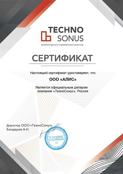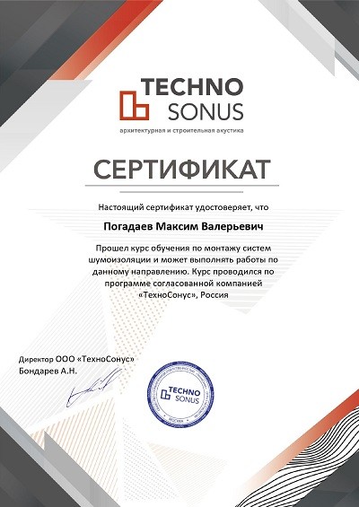 Каждый сотрудник прошел обучение и имеет сертификат от TECHNO SONUS и Knauf