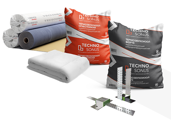 Разработанная собственная база материалов Techno Sonus позволяет эффективно решать все вопросы, связанные со звукоизоляцией помещений.